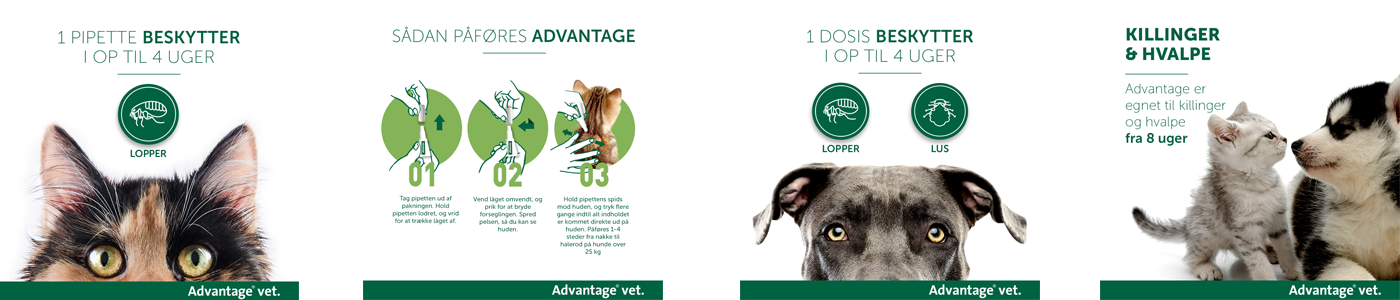 Advantage er en nem måde at forebygge og behandle loppeangreb på katte og hunde i alle størrelser.