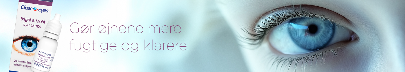 Cleareyes Bright & Moist øjendråber – steril, fugtgivende og smørende opløsning med 0,1 % hyaluronsyre og 0,5 % øjentrøst.