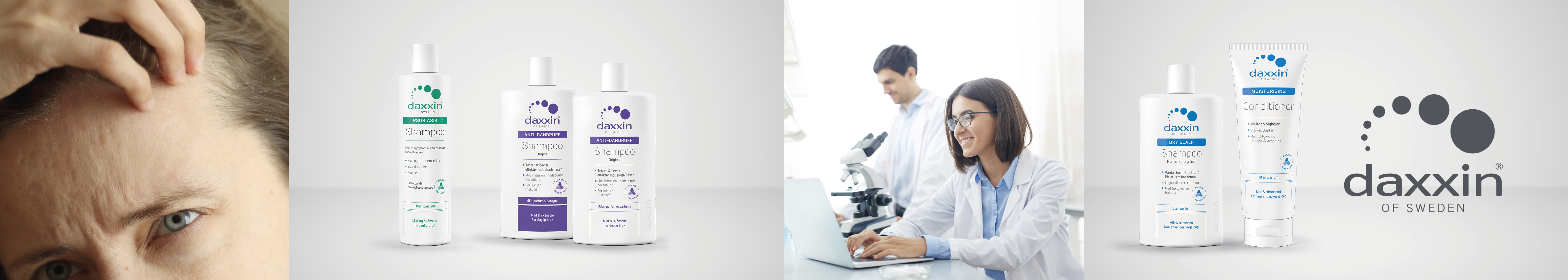 Daxxin er et førende brand inden for medicinsk hårpleje med bevist effektive produkter. Med sin unikke formel hjælper Daxxins forskellige produkter mennesker med hovedbundsproblemer som skæl, psoriasis samt tør eller irriteret hovedbund.