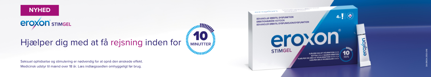 Eroxon® er en klinisk dokumenteret behandling til mænd over 18 år, med erektil dysfunktion. Den hurtigtvirkende gel påføres lokalt på penishovedet og hjælper mænd til at få erektion inden for 10 minutter.