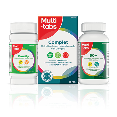 I Multi-tabs børnevitaminserien findes også omega-3 tilskud, og en multivitamin som indeholder tilskud af kalk. Multi-tabs omfatter også en serie til gravide og nyfødte børn samt en række produkter, der er specielt designet til at opfylde behovene hos voksne.