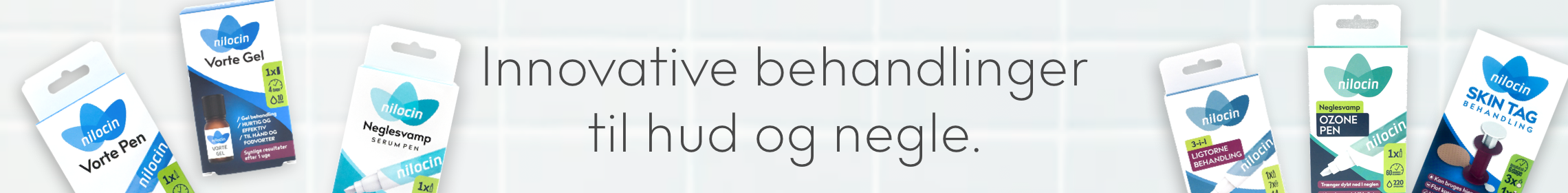Nilocin er en serie af innovative behandlinger til hud og negle. Med Nilocin kan du effektivt behandle neglesvamp, vorter, ligtorne og skin tags. Behandlingerne påføres med præcisions-applikator, så kun det påvirkede område bliver behandlet, derfor kan Nilocin med fordel bruges af hele familien.
