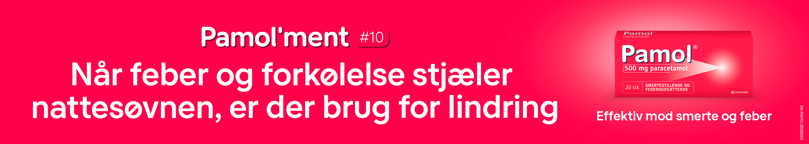 Smerte og feber rammer både store og små. Heldigvis findes der en Pamol® til alle størrelser. Pamol® fås som tabletter og som flash, der er en tablet, som indtages uden vand, da den hurtigt opløses på tungen. Smeltetabletten er også nem at tage for børn, personer der er sengeliggende, eller hvis man har synkeproblemer. Pamol® indeholder det aktive stof paracetamol, og er en allround smertestiller til hele familien.