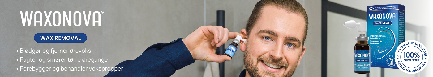 Waxonova ørespray er fri for mineralolie og tilsætningsstoffer. Den er beregnet til rengøring og pleje af den ydre øregang. Waxonova ørespray danner en beskyttende film i den ydre øregang og understøtter fjernelsen af ørevoks/vokspropper.
