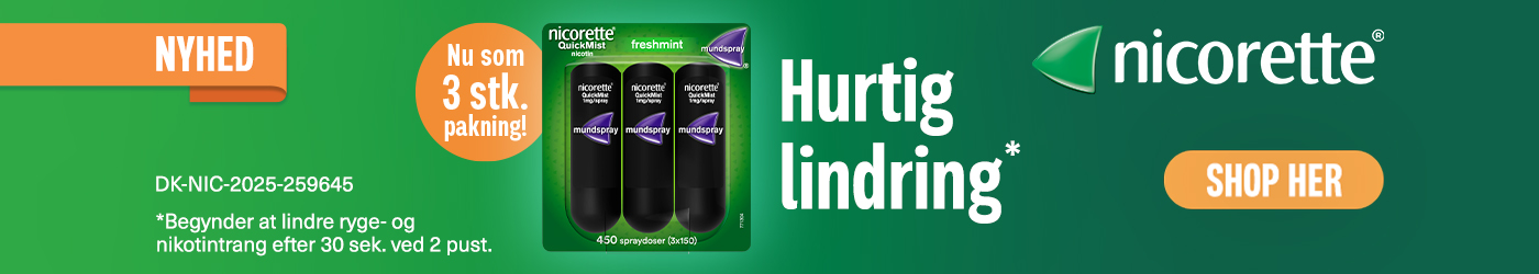 Der er gode muligheder for medicinsk hjælp til at stoppe med at ryge eller til at reducere din rygning. Der findes mange forskellige former for produkter, smag på tyggegummi og pakningsstørrelser så du kan finde det, der passer bedst til dig. Inhalator, tyggegummi, mundspray og sugetabletter tager rygetrangen hurtigt, mens plastre afgiver nikotin jævnt over dagen eller døgnet.